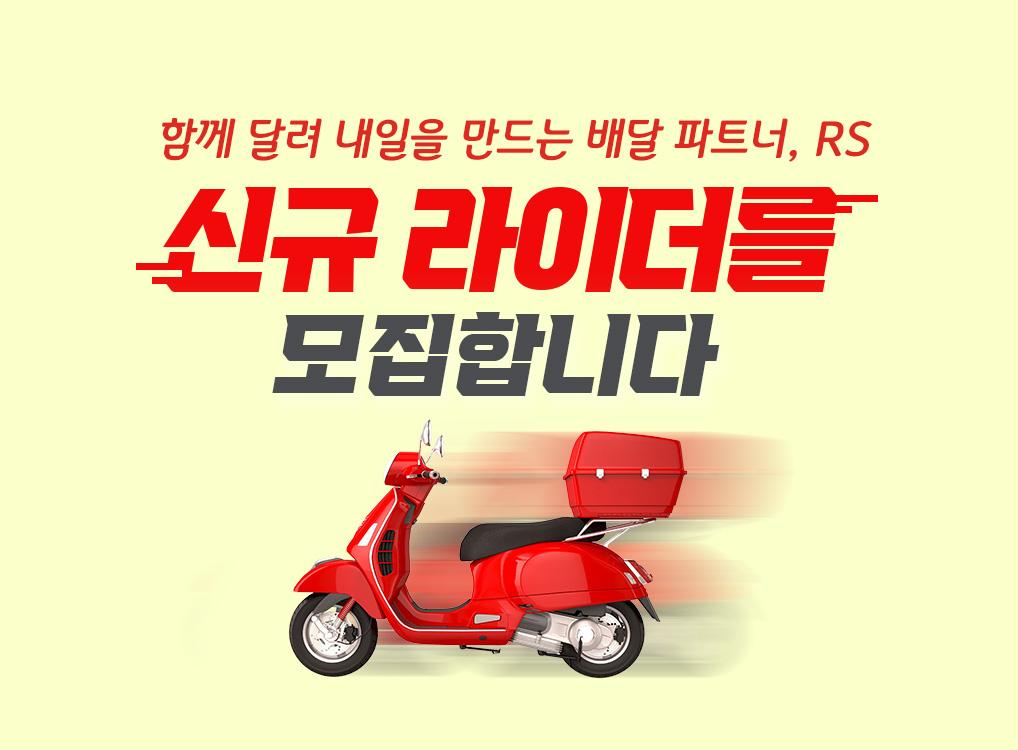 RS 레드스타 딜리버리 사업부에서는 신규 라이더를 상시 모집하고 있습니다.