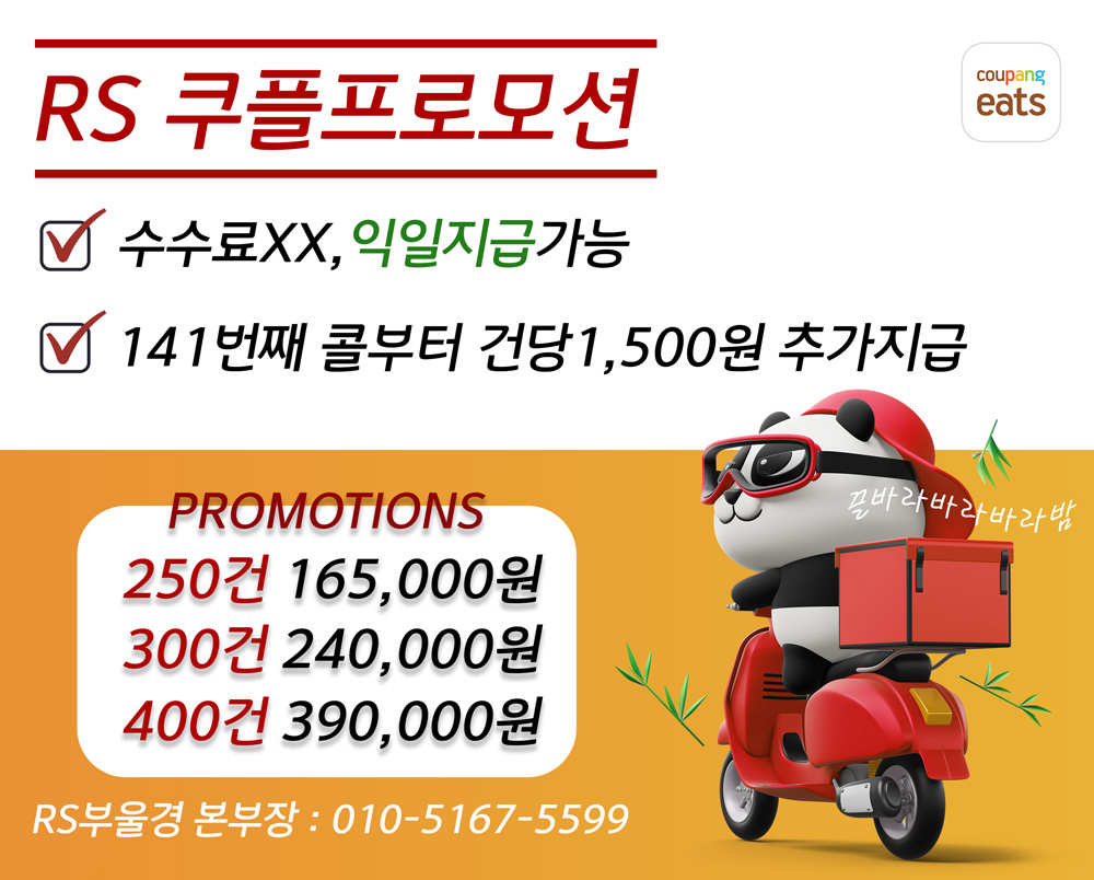 이처럼 RS 레드스타 딜리버리 사업부는 부산에서 가장 안정적인 쿠플·배플 파트너로 자리 잡았습니다.